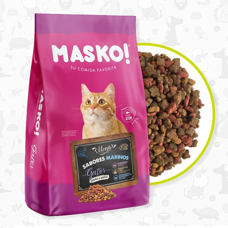 Masko es una línea de alta calidad nutricional, con una fórmula equilibrada en sus nutrientes e irresistible para la mascota. Fabricada en base a materias primas cuidadosamente seleccionadas y dosificadas, este alimento asegura óptimos niveles de digestibilidad y palatabilidad.